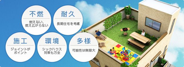 屋上庭園の技術を反映した防水で、耐久性、強度、不燃性にも優れる防水材なので、そのまま土を入れて植栽を行い、バルコニー庭園を造ることも可能です。