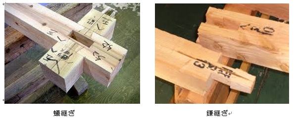在来工法により木造住宅を作る場合、木材をつなぎ合わせたり直角に接合する部分に使われる方法で、継手、枘(ほぞ)等とも言われているものです。