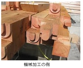 右側の写真が機械加工の仕口ですがきれいにカットされています。でも時々切り口のシャープでないものを見かけ ることもあります。機械の歯が切れなくなると起こる現象 ですが、強度には関係ありません。
