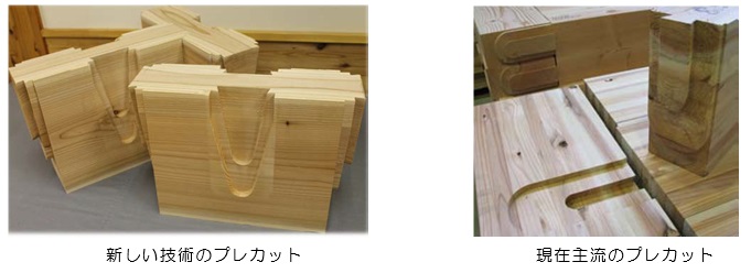 また、最近では機械加工の技術が進んで下の左側の様に斜めのカットをすることで梁の耐力を、従来からある右側のカットより2倍ぐらいの力が出せるようになりました。