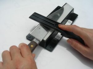 包丁の角度を一定に固定する研ぎ台とダイアモンド砥石を組み合わせたものです。