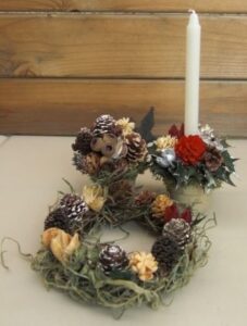 松ボックリや木の実など好きなもの飾って、チョット早いクリスマス気分を楽しみませんか。