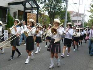 親水公園沿いに建つ当社の前を小学生のパレード隊が通ることもあって、9年前からお祭りの仲間入りをしています。