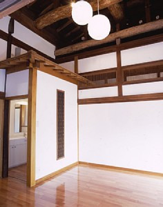 大きな松梁やケヤキの梁、八寸の柱などの立派な構造はそのままに、内装や外壁をほとんどリニューアルし、当初のイメージを損なわないようにすべてをリニューアルした家です。