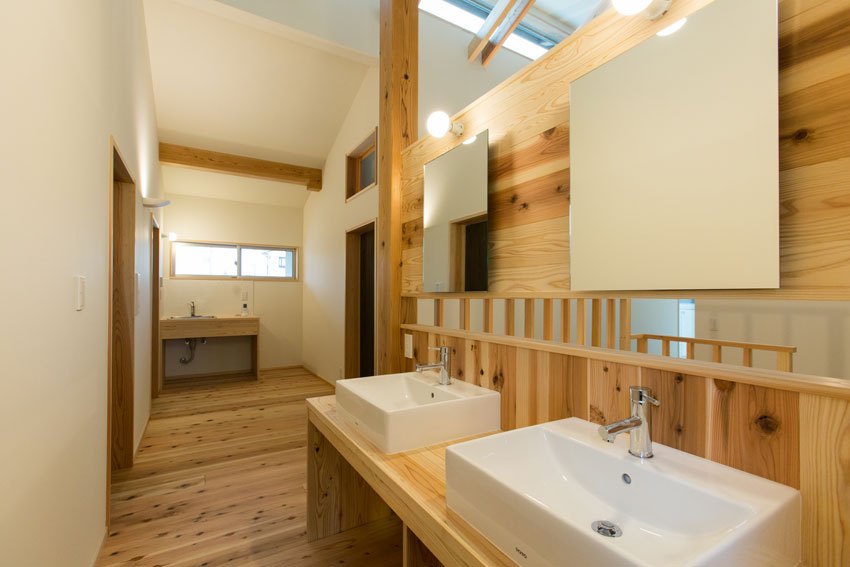 「環境共生」は私の普段の設計テーマでもあり、一戸建て住宅を設計するのと同じように、自然の採光、通風を考え、国産の無垢材を使い、合板 は出来るだけ使わず、断熱材なども環境性能の高いものを使用しています。